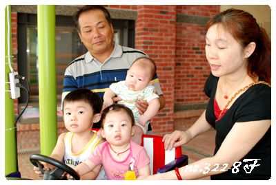 妹妹甜蜜的全家福,小西瓜很會看鏡頭喔!右邊附送小西瓜腿"開很大"照片一張,可以去練劈腿了!
