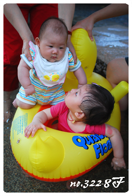 外婆真的很愛惡搞QQ耶!QQ也不過才兩個月大,玩游泳圈太超齡了吧!