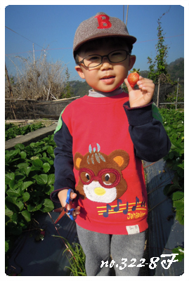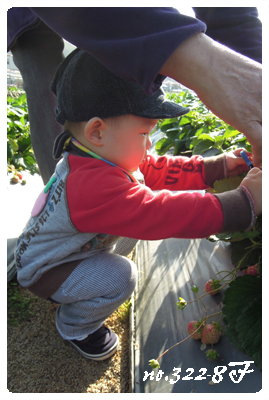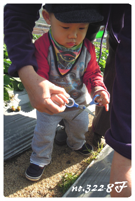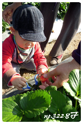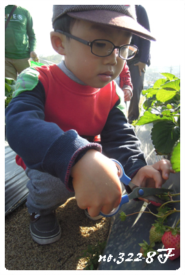 湯圓是採草莓老手,拿了剪刀就開剪了,但是小QQ可是初體驗呢!哈哈!小QQ這馬步,蹲得好穩啊!